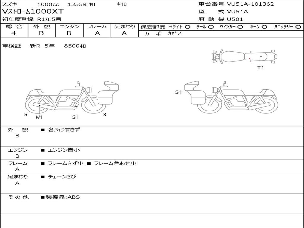| Номер рамы / VIN | VU51A-101362 |