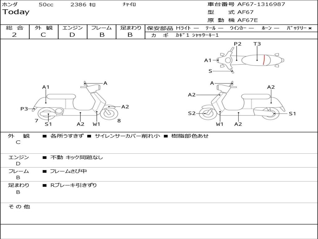 | Номер рамы / VIN | AF67-1316987 |