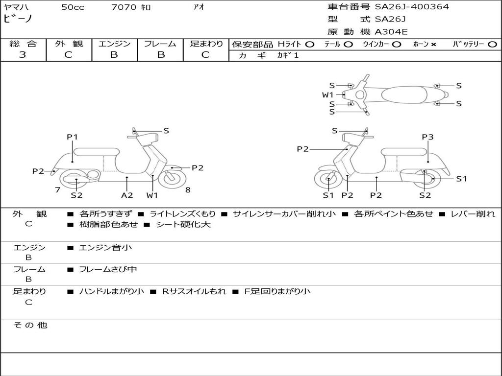 | Номер рамы / VIN | SA26J-400364 |