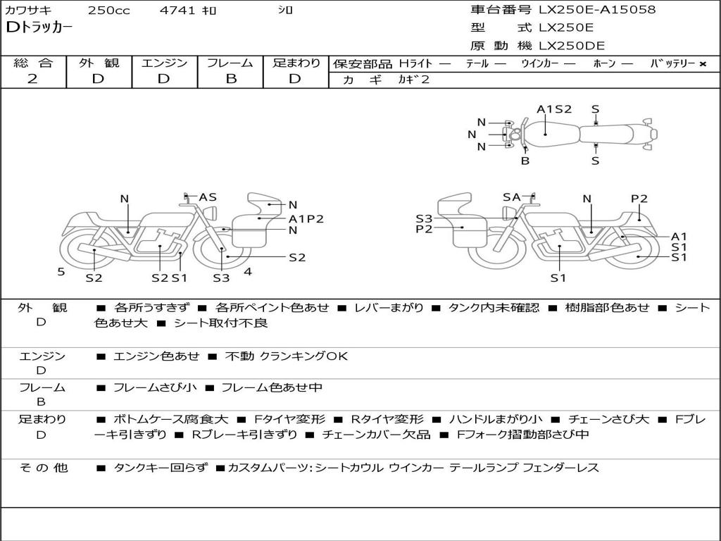| Номер рамы / VIN | LX250E-A15058 |