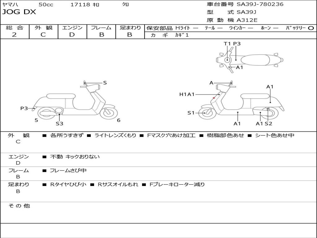 | Номер рамы / VIN | SA39J-780236 |