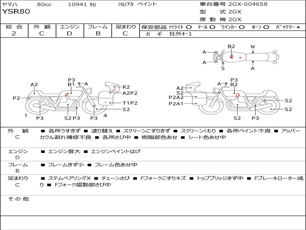 | Номер рамы / VIN | 2GX-004658 |