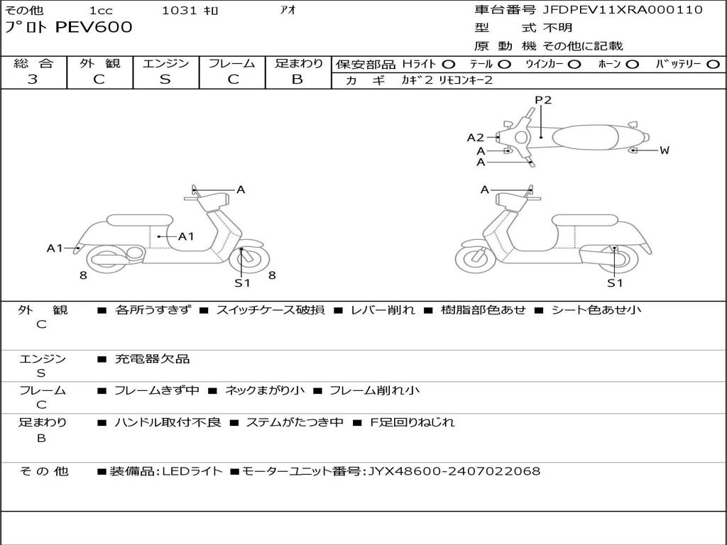 | Номер рамы / VIN | JFDPEV11XRA000110 |