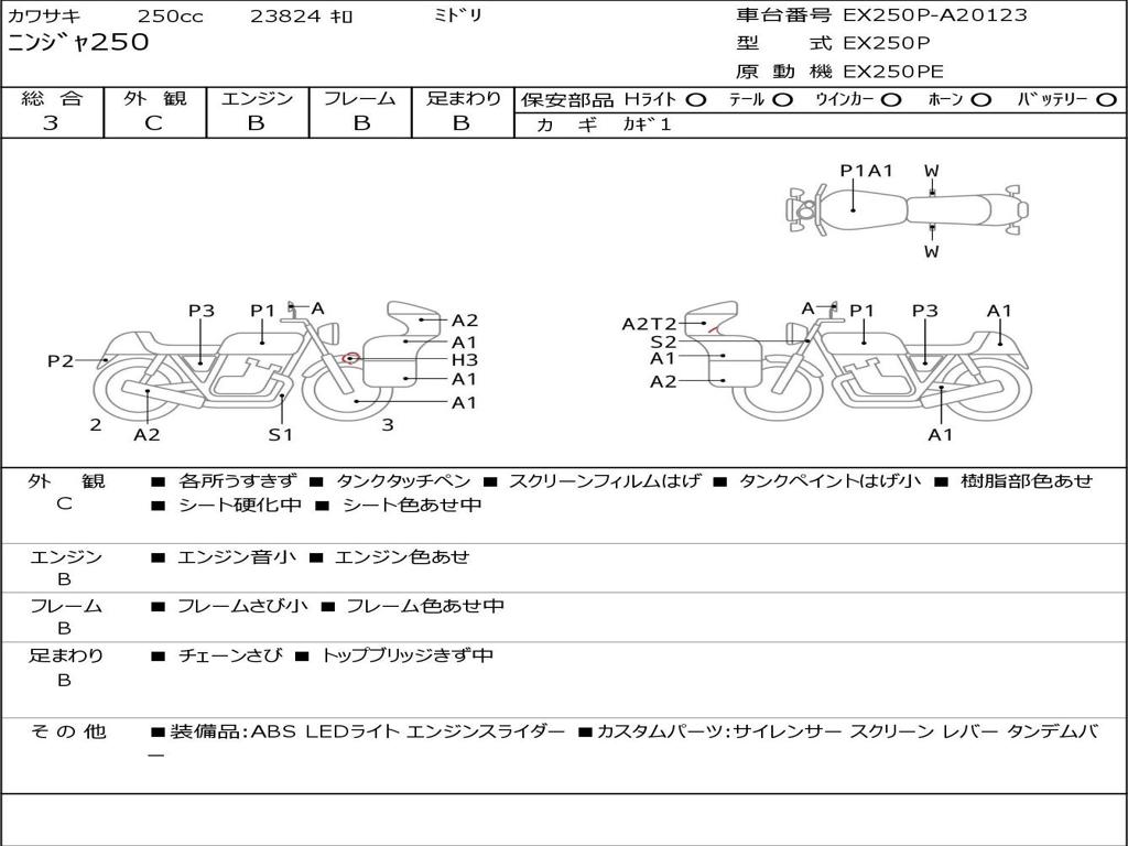 | Номер рамы / VIN | EX250P-A20123 |