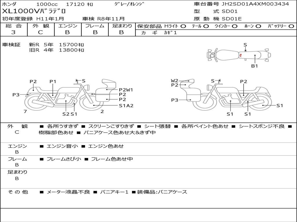 | Номер рамы / VIN | JH2SD01A4XM003434 |