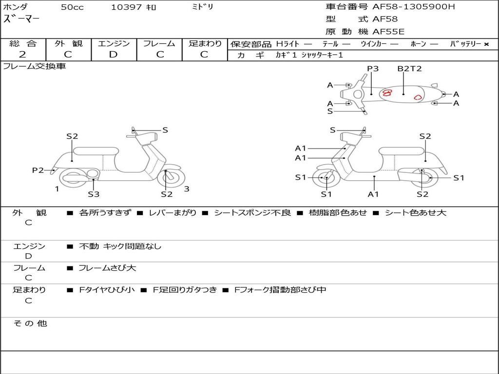 | Номер рамы / VIN | AF58-1305900H |