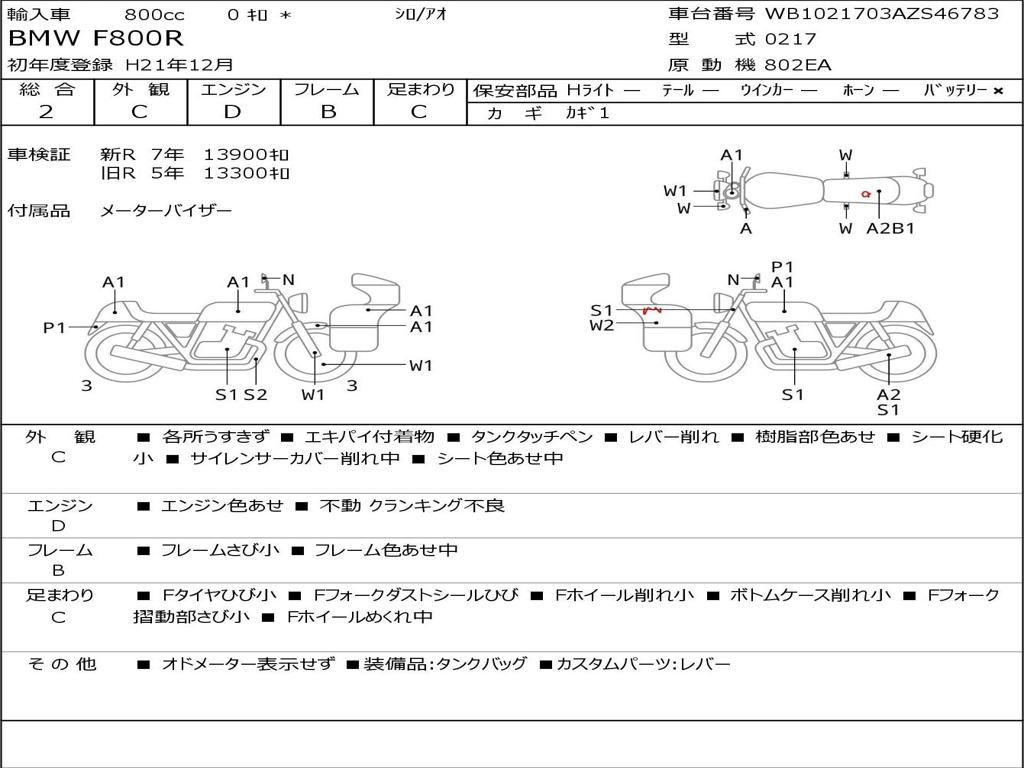 | Номер рамы / VIN | WB1021703AZS46783 |