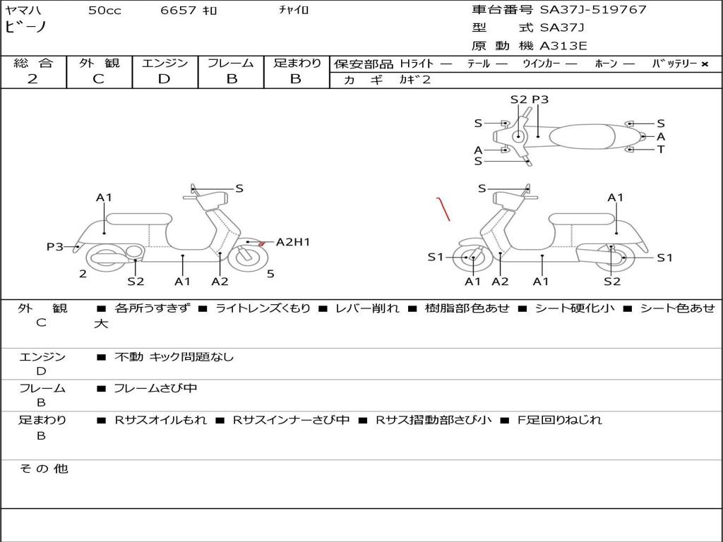 | Номер рамы / VIN | SA37J-519767 |