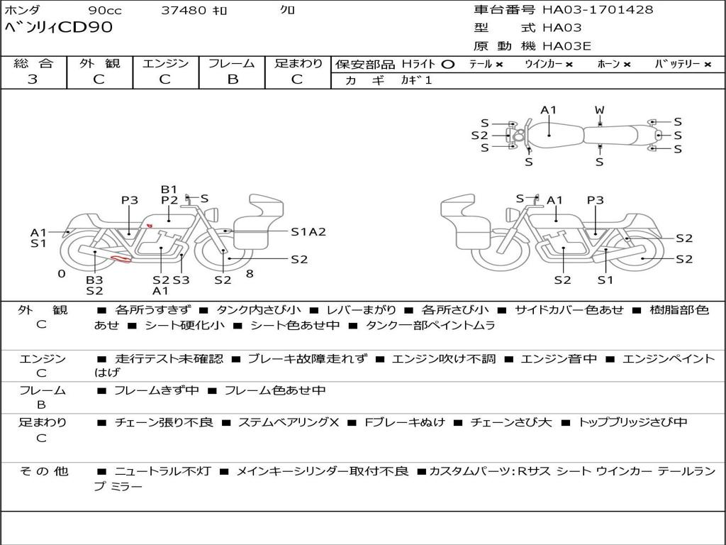 | Номер рамы / VIN | HA03-1701428 |