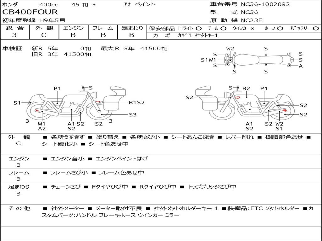 | Номер рамы / VIN | NC36-1002092 |