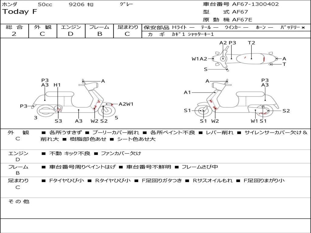 | Номер рамы / VIN | AF67-1300402 |