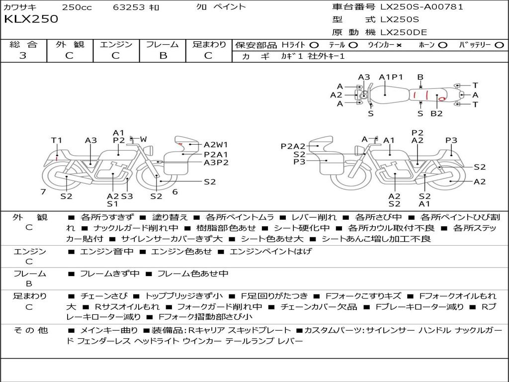 | Номер рамы / VIN | LX250S-A00781 |