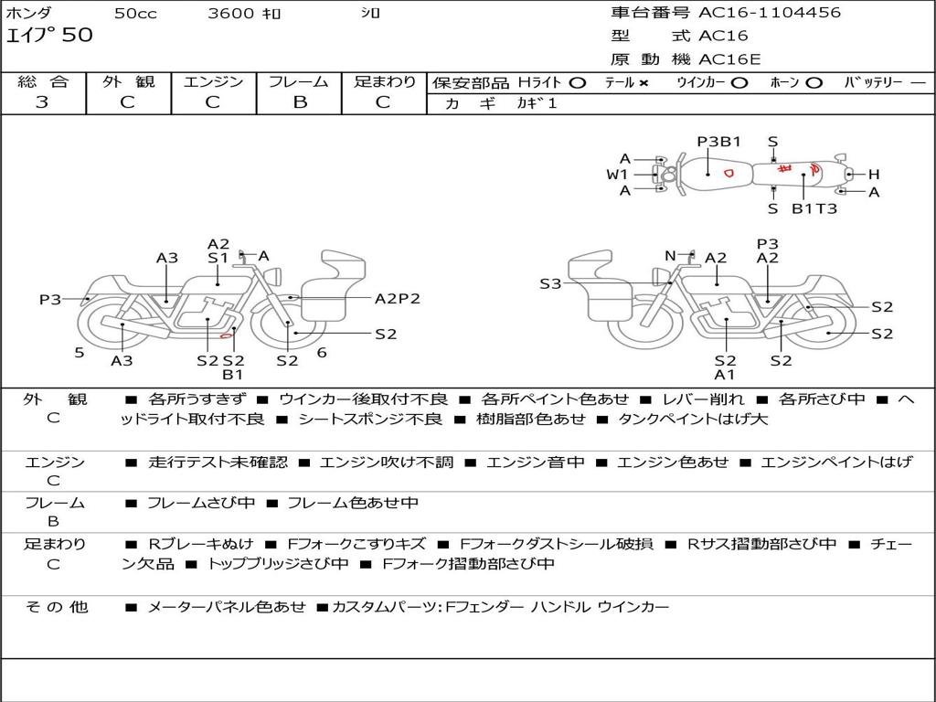 | Номер рамы / VIN | AC16-1104456 |