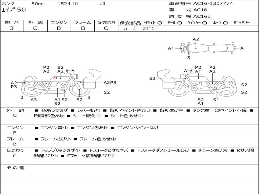 | Номер рамы / VIN | AC16-1307774 |