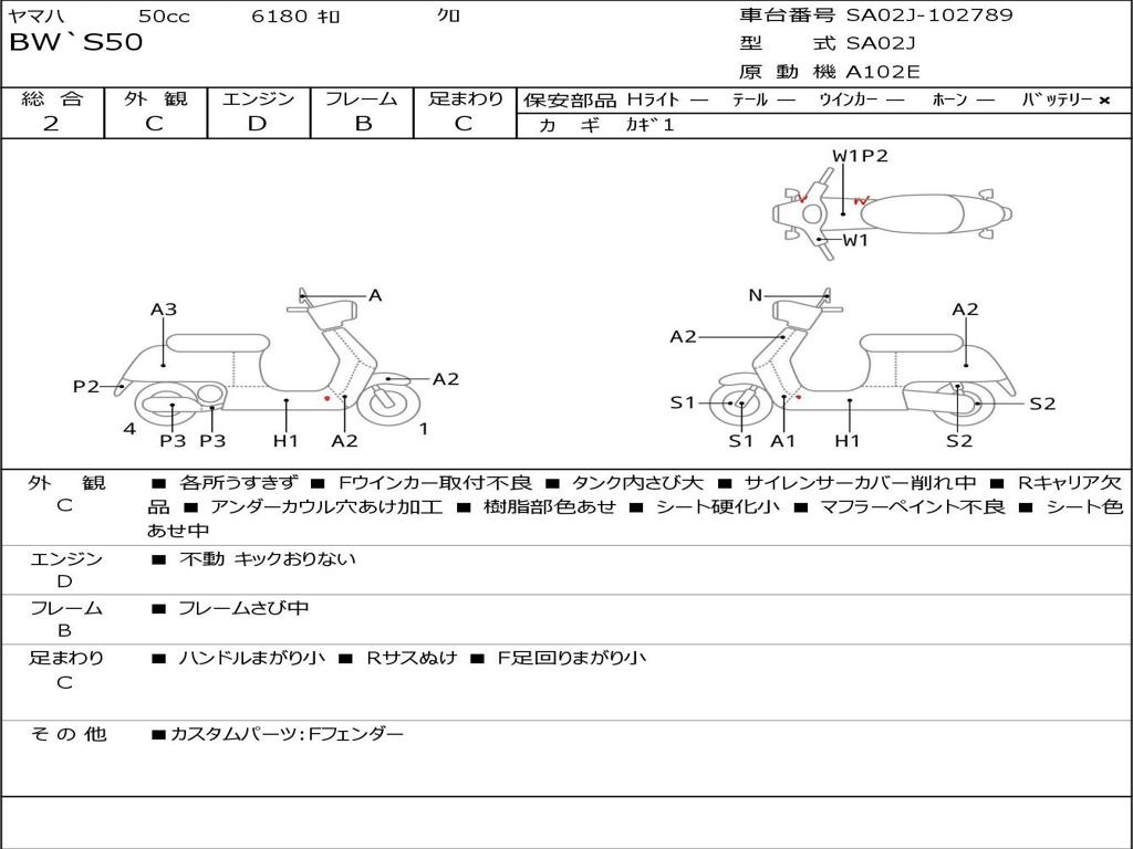 | Номер рамы / VIN | SA02J-102789 |