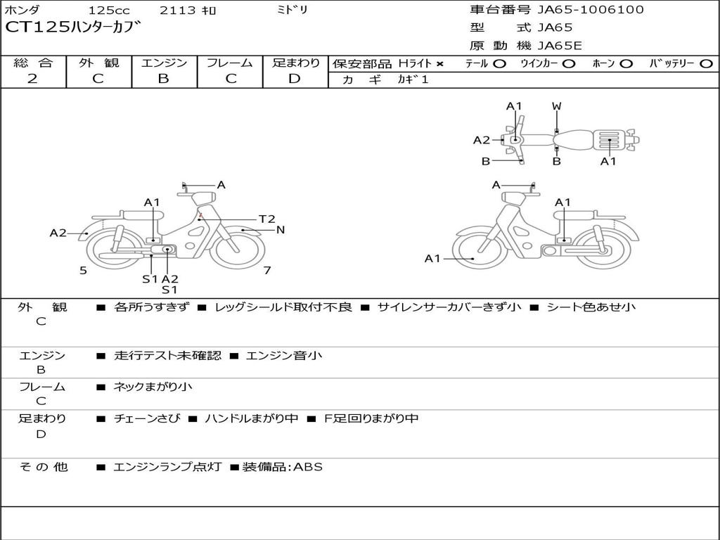 | Номер рамы / VIN | JA65-1006100 |