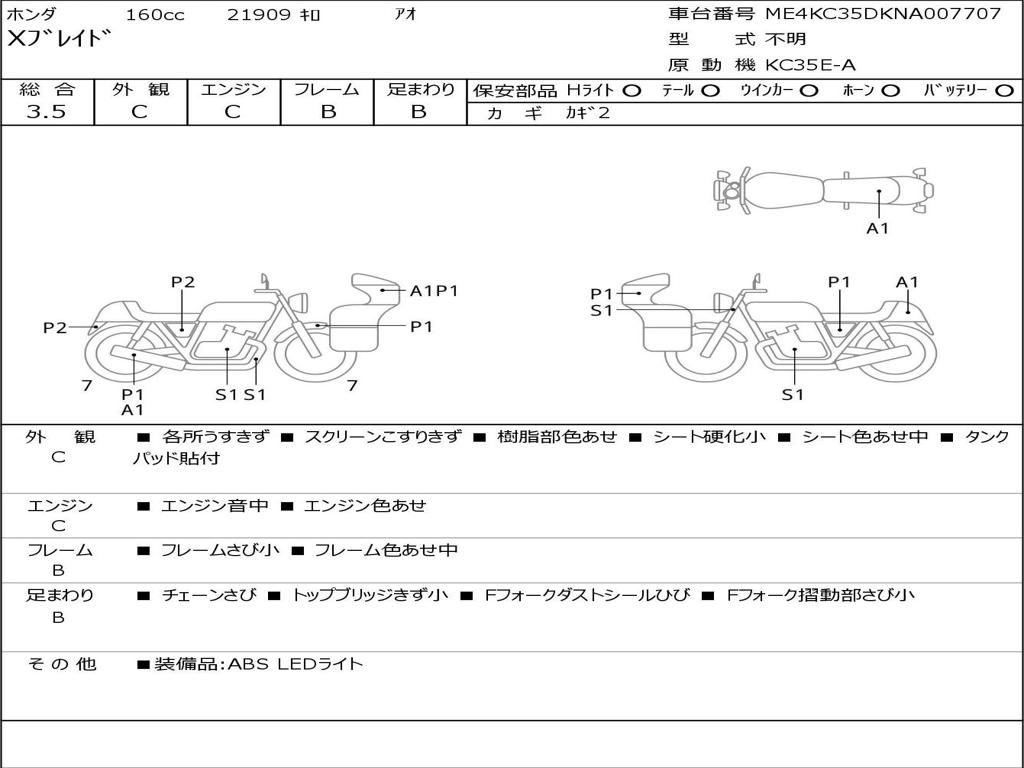 | Номер рамы / VIN | ME4KC35DKNA007707 |