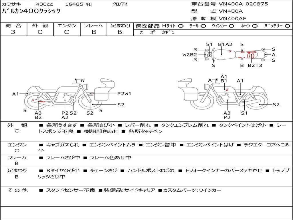 | Номер рамы / VIN | VN400A-020875 |