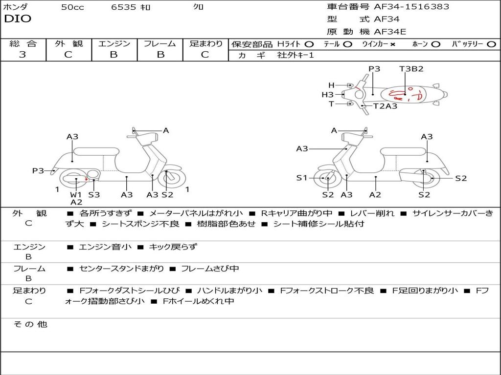 | Номер рамы / VIN | AF34-1516383 |