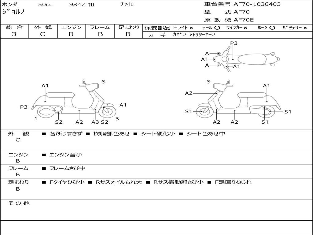 | Номер рамы / VIN | AF70-1036403 |