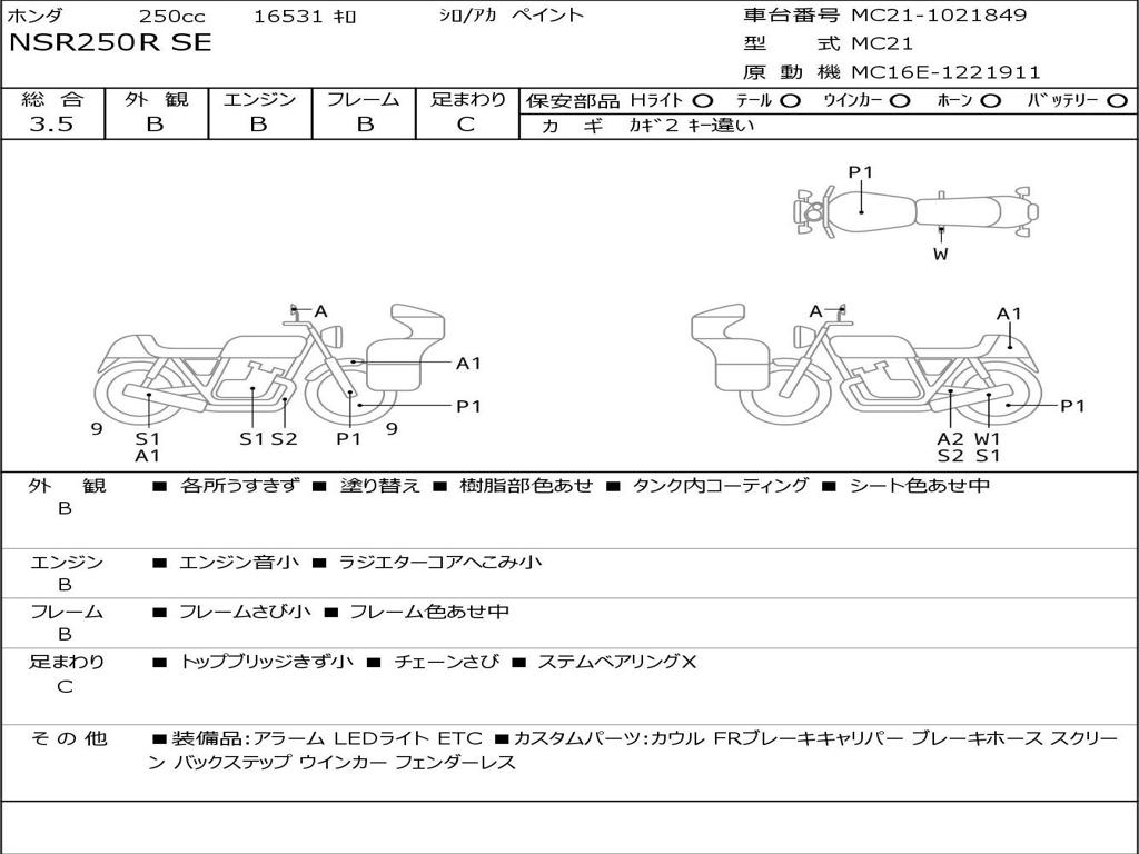 | Номер рамы / VIN | MC21-1021849 |