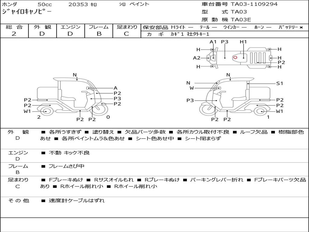 | Номер рамы / VIN | TA03-1109294 |