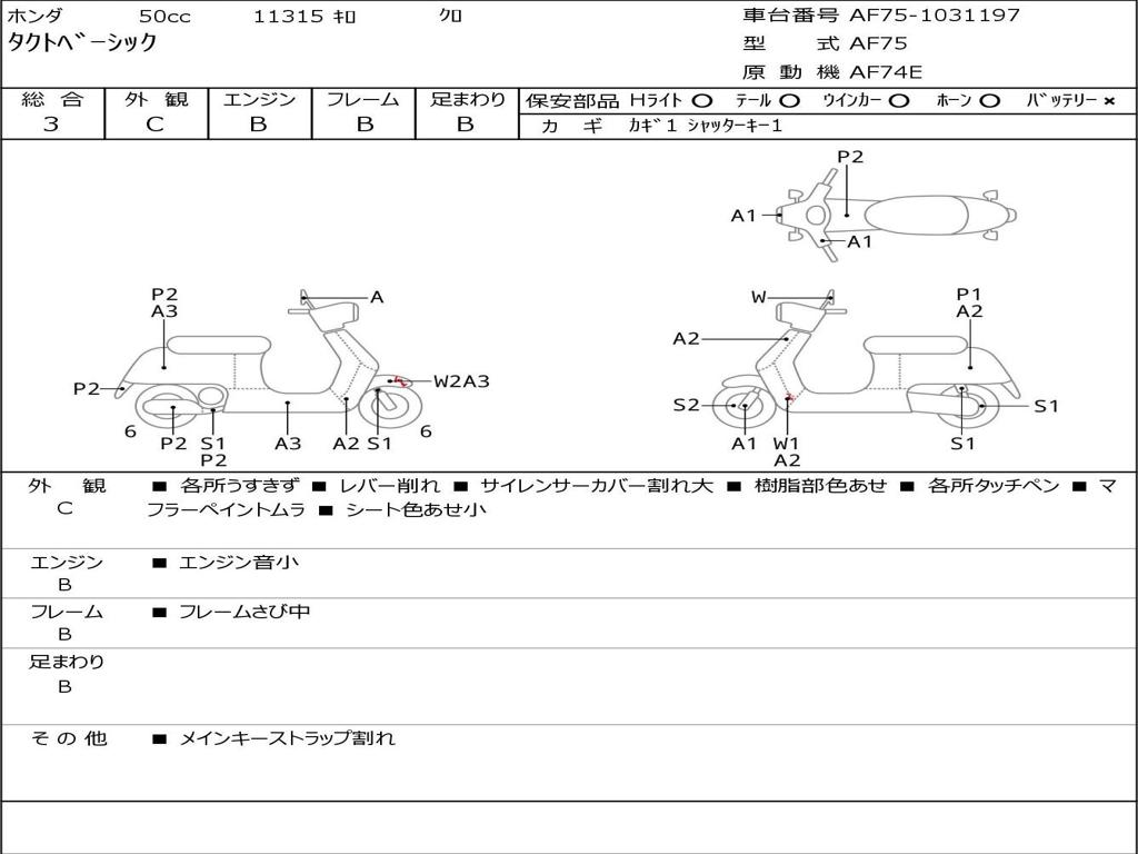 | Номер рамы / VIN | AF75-1031197 |