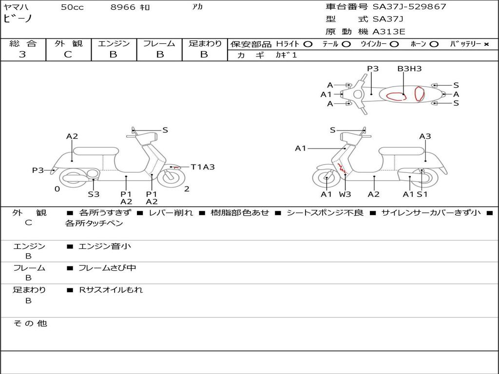 | Номер рамы / VIN | SA37J-529867 |