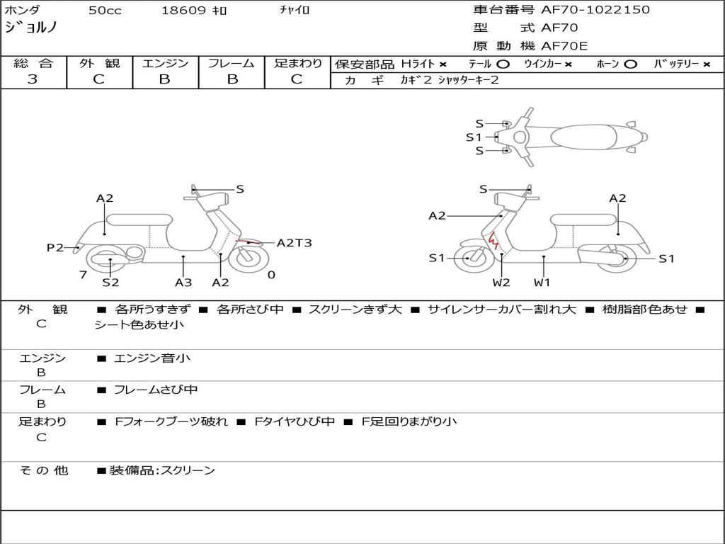 | Номер рамы / VIN | AF70-1022150 |