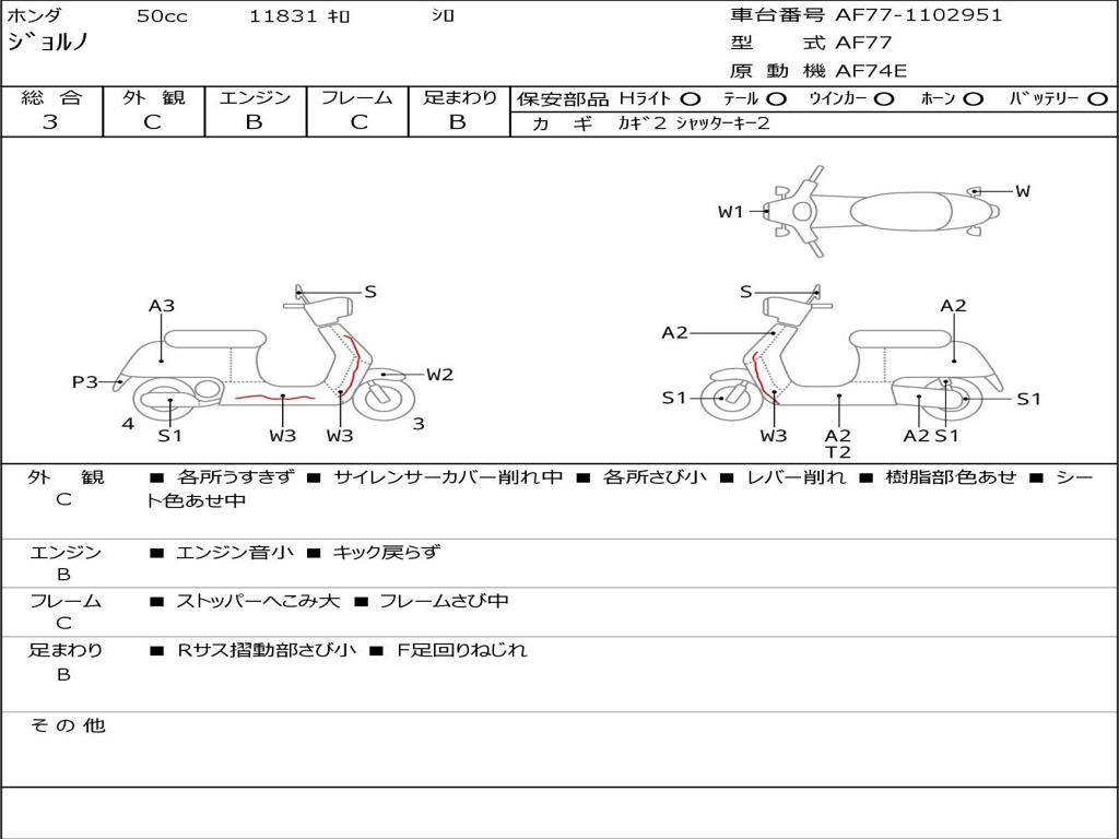 | Номер рамы / VIN | AF77-1102951 |