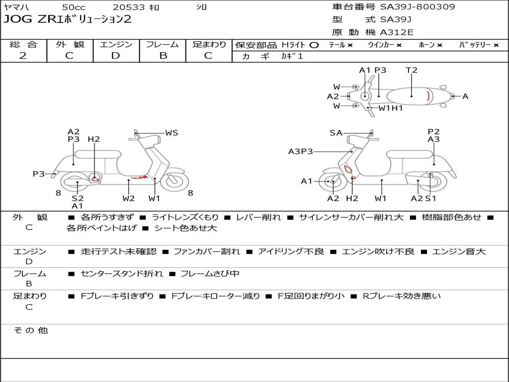 | Номер рамы / VIN | SA39J-800309 |