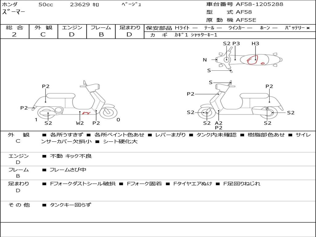 | Номер рамы / VIN | AF58-1205288 |