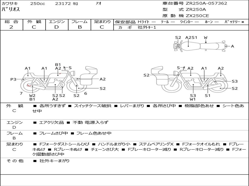 | Номер рамы / VIN | ZR250A-057362 |