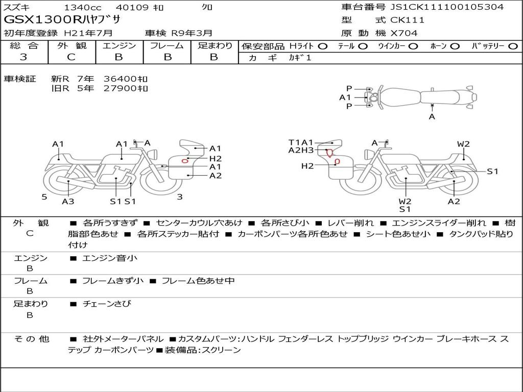 | Номер рамы / VIN | JS1CK111100105304 |