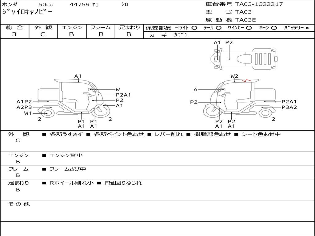 | Номер рамы / VIN | TA03-1322217 |