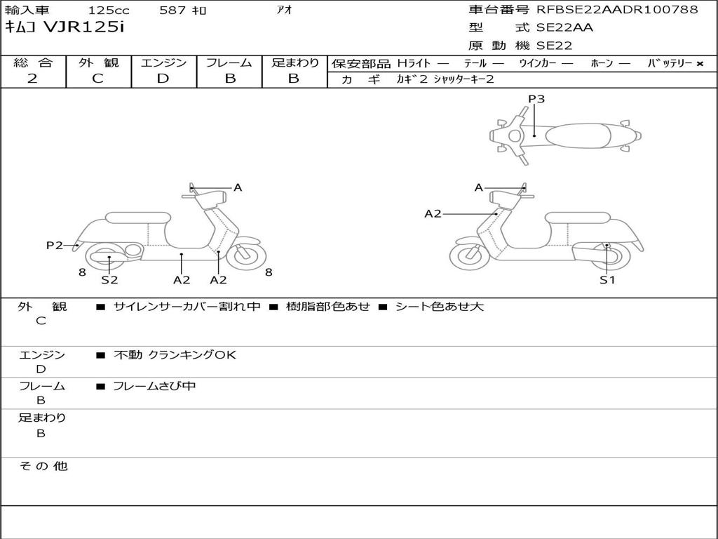| Номер рамы / VIN | RFBSE22AADR100788 |