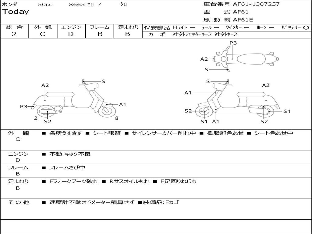 | Номер рамы / VIN | AF61-1307257 |