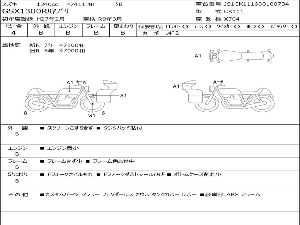 | Номер рамы / VIN | JS1CK111600100734 |