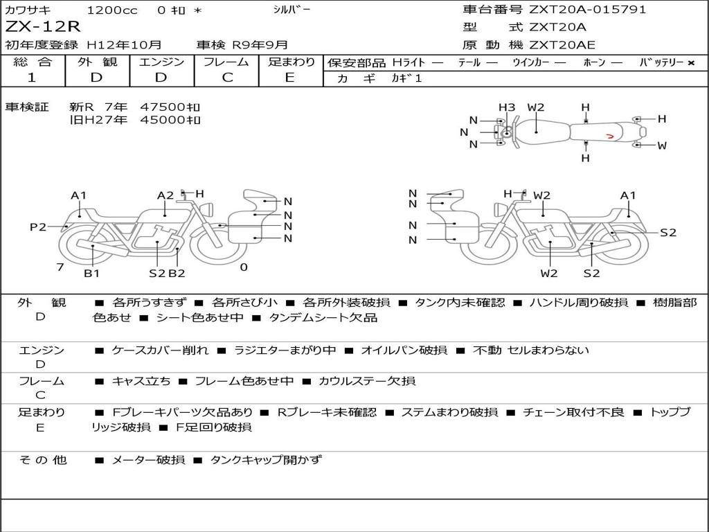 | Номер рамы / VIN | ZXT20A-015791 |