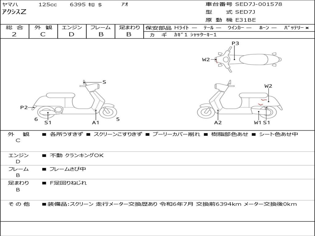 | Номер рамы / VIN | SED7J-001578 |