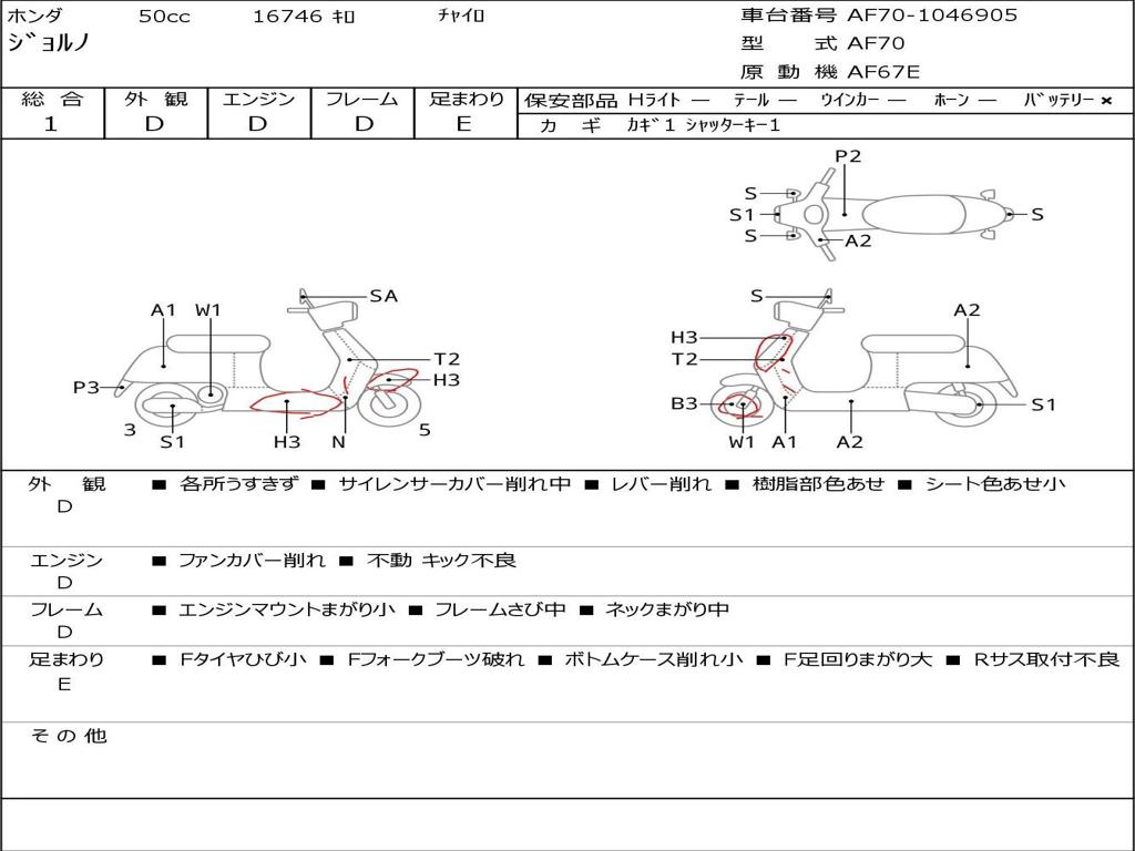 | Номер рамы / VIN | AF70-1046905 |
