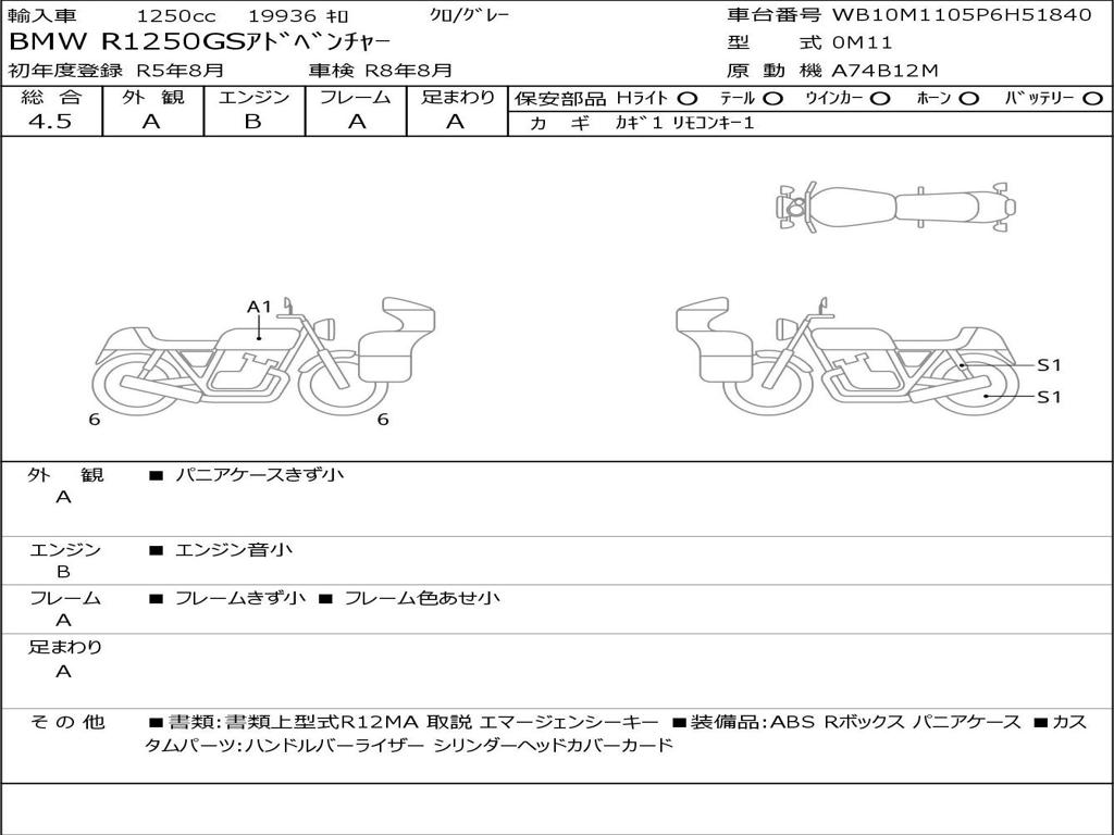 | Номер рамы / VIN | WB10M1105P6H51840 |