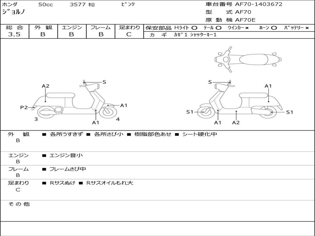 | Номер рамы / VIN | AF70-1403672 |