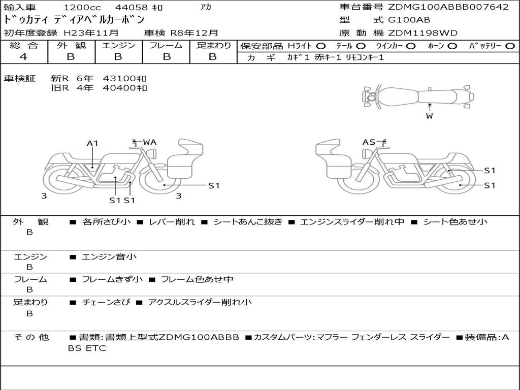 | Номер рамы / VIN | ZDMG100ABBB007642 |