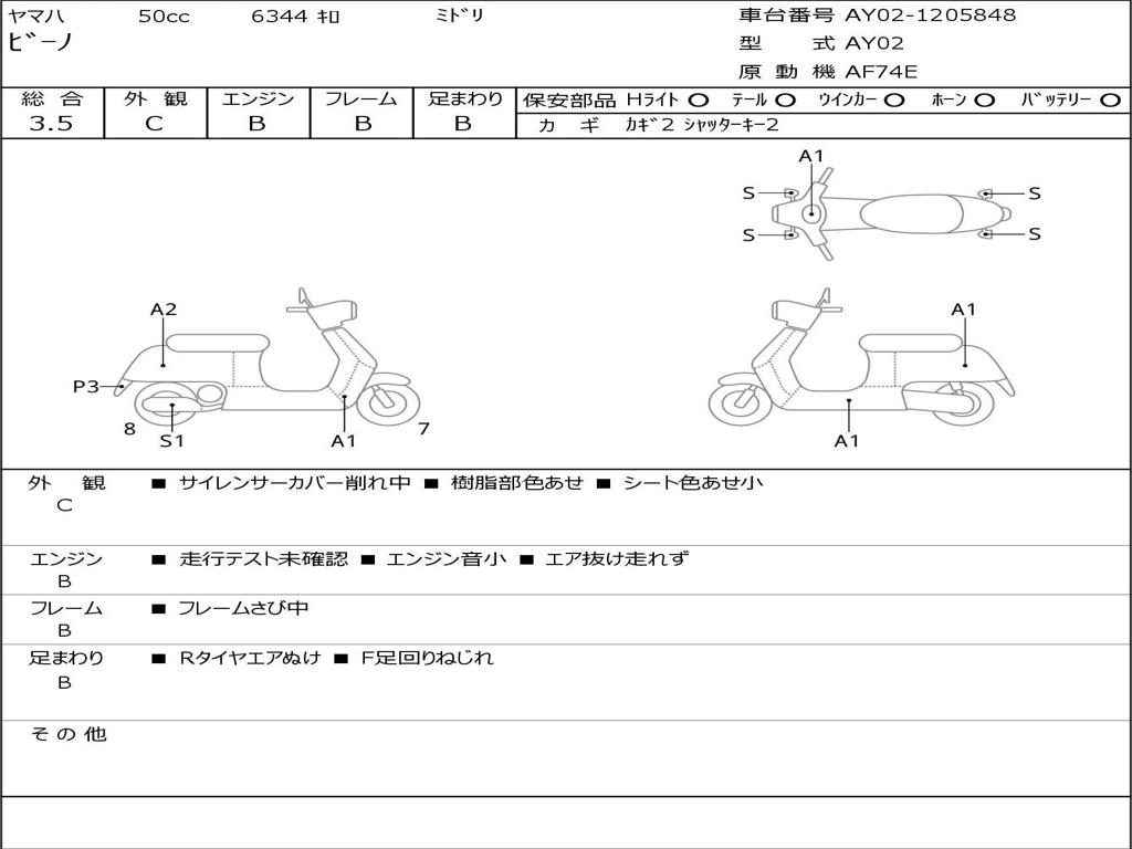 | Номер рамы / VIN | AY02-1205848 |