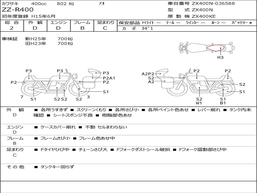 | Номер рамы / VIN | ZX400N-036588 |