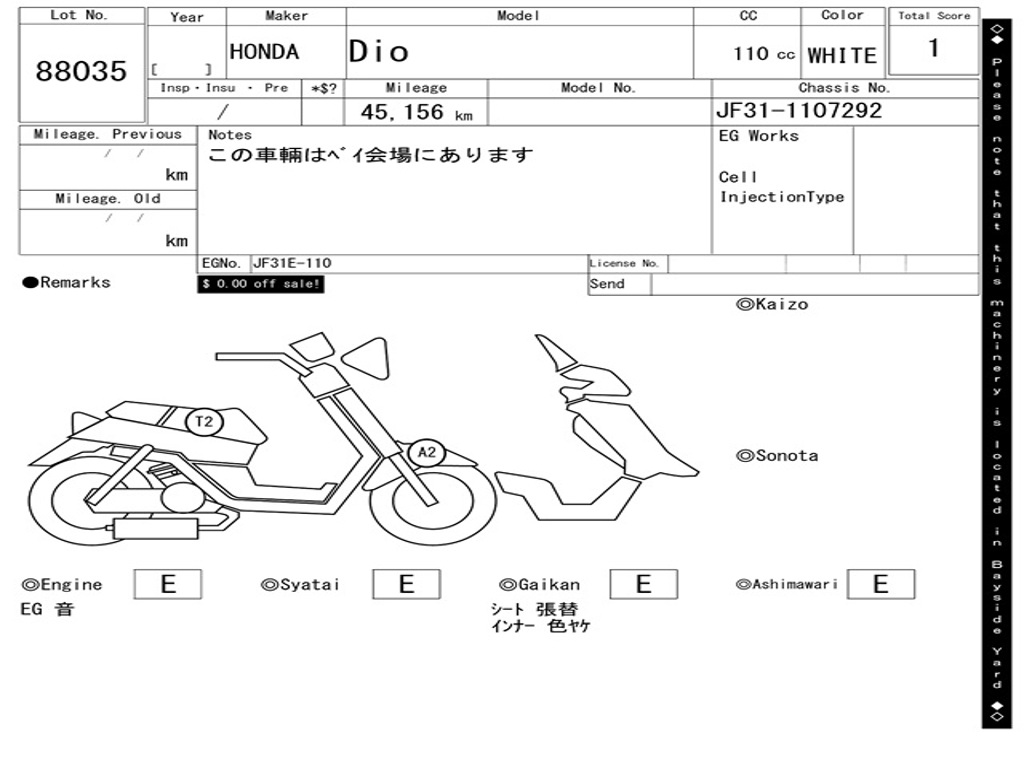 | Аукцион | ARAI BAYSIDE |
