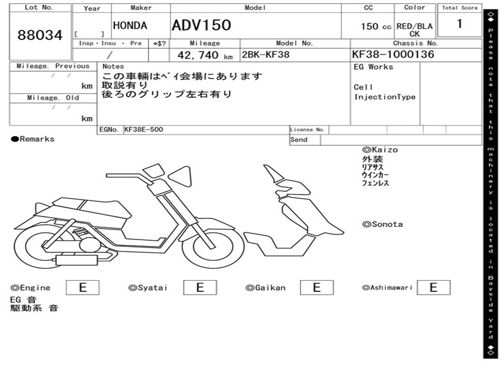 | Номер рамы / VIN | KF38-1000136 |
