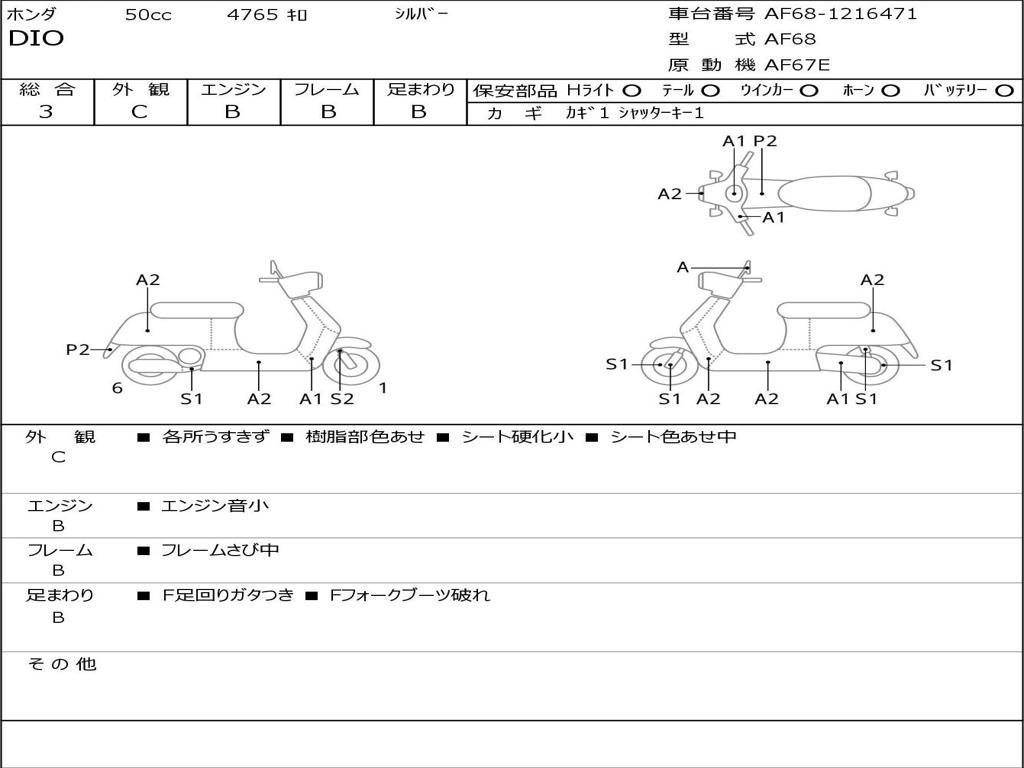 | Номер рамы / VIN | AF68-1216471 |
