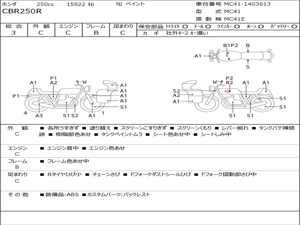 | Номер рамы / VIN | MC41-1403613 |